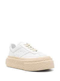 white calf leather crinkled finish round toe perforated detailing signature numbers motif signature single-stitch logo padded ankle branded leather insole leather lining contrasting chunky platform sole front lace-up fastening Size & Fit Model Measurements: Bust: 0cm Height: 0cm Hips: 0cm Waist: 0cm Fabric and Care Designer Style ID: S59WS0221P6783 Designer Colour: T1002 WHITE Composition: Sole: Rubber 100%; Outer: Calf leather 100%; Lining: Calf leather 100%Made in Italy