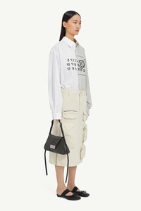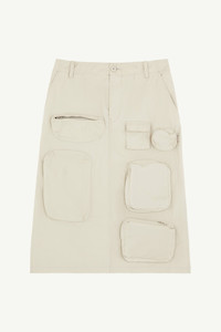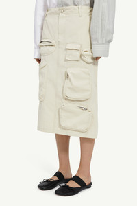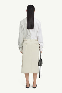 Imbued with utilitarian influences, accented by front flap and zip pockets, this midi skirt is cut from cotton gabardine to a classic silhouette, complete with belt loops and zip and button closure. MM6’s discreet yet distinct signature, a horizontal line of white stitches, is also found on the back of the garment. Product Details Item ID S52ME0017M35148103 Primary fabric: 100% cotton Pocket lining: 100% cotton Cotton gabardine midi skirt Regular waist Belt loops Zip and button closure Front zip pockets Front flap pockets Side pockets Adjustable waist at the back White stitch line at the back Made in Italy Model is 5'8" tall and wears a size 42.