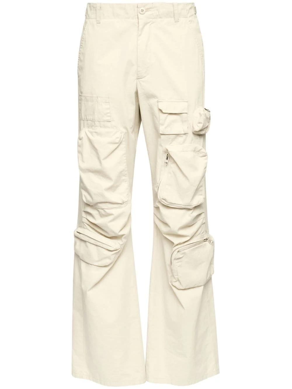 cotton gabardine-wave cargo trousers Highlights - Beige - Cotton - Gabardine weave - Belt loops - Two side slit pockets - Multiple cargo pockets - Two rear button-fastening jetted pockets - Wide leg - Front button and zip fastening Made in Italy Composition Cotton 100% SIZE & FIT FittingInformation Designed with a wide-leg cut, these trousers allow for a close fit at the waist and offer a loose and roomy fit over the leg Made from a midweight non-stretch fabric This piece fits true to size – take your usual size