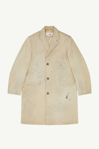 Crafted in cotton gabardine, this jacket pairs sharp tailoring with authentic painterly touches. These traces of paint suggest an ongoing creative process, while the white stitch line at the back subtly ties it to MM6’s deconstructed identity. A reimagined classic with an unexpected edge. Product Details Item ID SH2AH0007S78537113