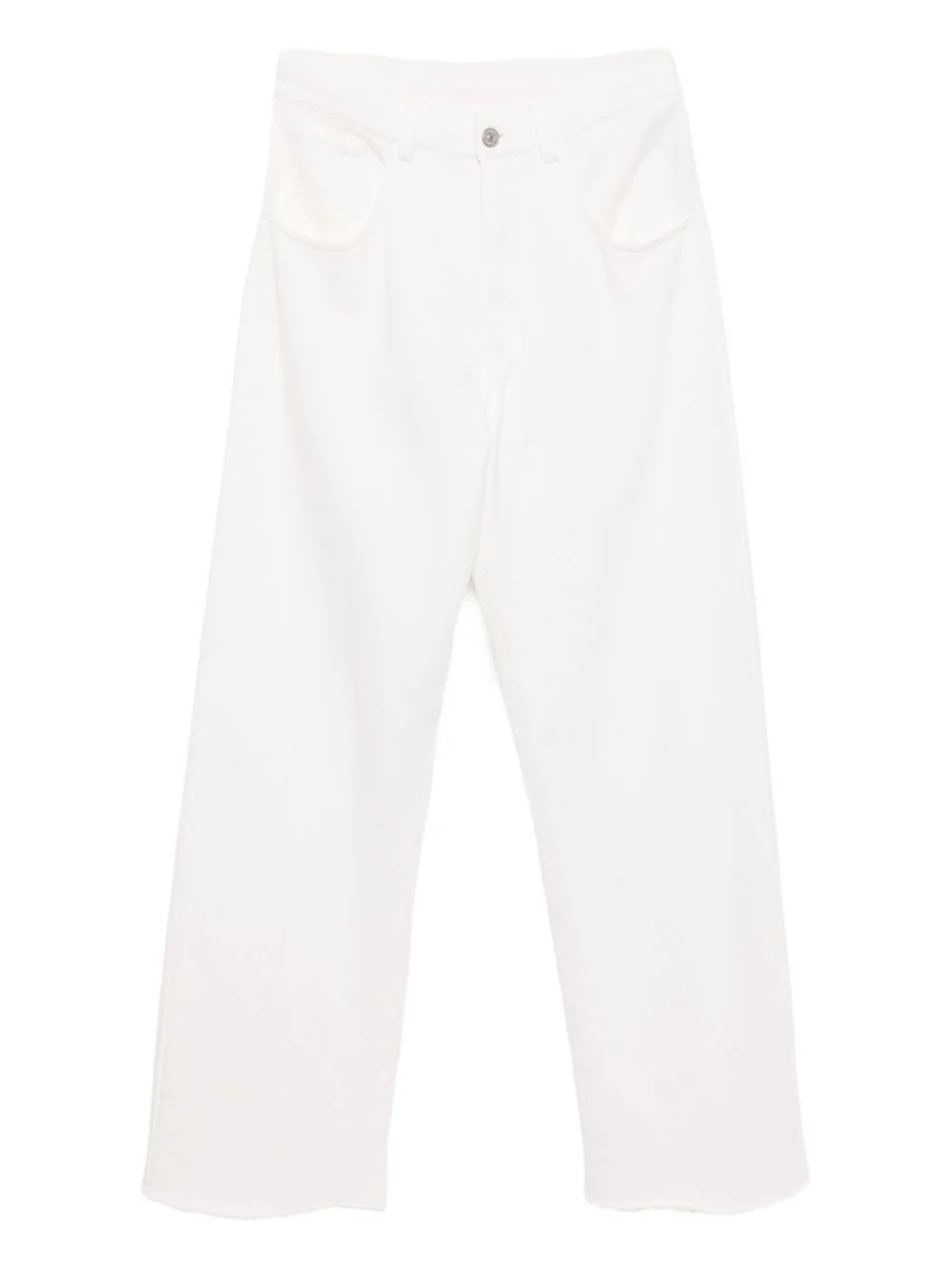 cotton pants Highlights - White - Jersey texture - Concealed front button, hook and zip fastening - Belt loops - Classic five pockets Made in Italy Composition Cotton 100% SIZE & FIT Model measurements Height 5 ft 10 in(1.77 m) Bust/Chest 30.7 in(78 cm) Hips 35.82 in(91 cm) Waist 21.25 in(54 cm) FittingInformation Designed with a wide-leg cut, these trousers allow for a close fit at the waist and offer a loose and roomy fit over the leg The partially elasticated waistband offers increased movement and comfort at the waist Made from a midweight non-stretch fabric, this piece offers minimal elasticity when worn Washing instructions Machine Wash