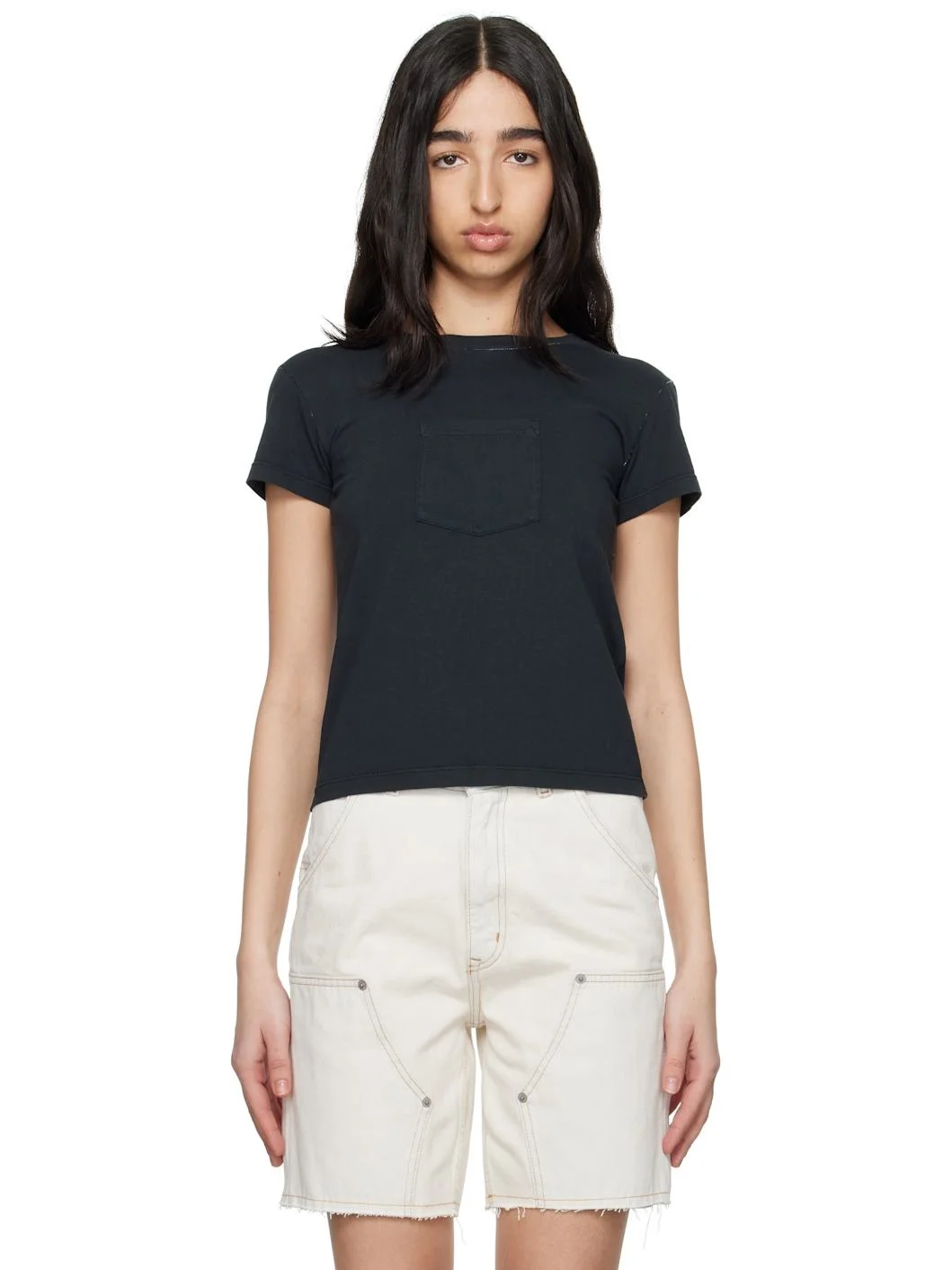 Cotton jersey T-shirt. · Rib-knit crewneck · Patch pocket at chest · White stitching at back collar · Contrast stitching in white Supplier color: Washed black 100% cotton. Made in Italy 251188F110056