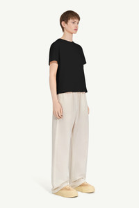 This everyday cotton T-shirt merges classic design with MM6’s signature subversive twists. Its crewneck and regular fit are elevated by subtle darting to the back that introduces extended proportions. At the back, a horizontal white stitch line underscores the Maison's identity. Product Details Item ID S52GC0334S24311899 Primary fabric: 100% cotton Cotton jersey T-shirt Crewneck White stitch line at the back Regular fit Made in Portugal