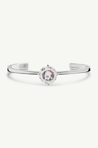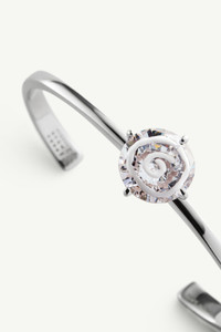 A gesture of controlled imperfection, this cuff bracelet reinterprets one of Maison Margiela’s iconic codes – white paint. A hand-applied swirl on a precious stone introduces a layer of raw, expressive contrast while MM6's numeric signature discreetly marks the interior. Product Details Item ID SM6UY0101P8372971 Composition: Body 100% Brass Application: 100% Zircon One size Open cuff bracelet Thin polished metal band Central round gemstone Spiral pattern detail Four prong gemstone setting Engraved inner band details Smooth, shiny metal surface Made in Italy
