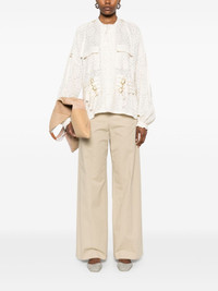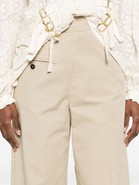 deconstructed trousers Highlights - Light beige - Concealed side hook and zip fastening - Belt loops - Jetted pocket - Rear button-fastening jetted pocket Made in Italy Composition Outer: Cotton 100% Lining: Viscose 100% SIZE & FIT Model measurements Height 5 ft 11 in(1.8 m) Bust/Chest 31.49 in(80 cm) Hips 36.61 in(93 cm) Waist 24.4 in(62 cm) FittingInformation Designed with a wide-leg cut, these trousers allow for a close fit at the waist and offer a loose and roomy fit over the leg Made from a midweight non-stretch fabric