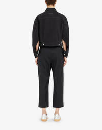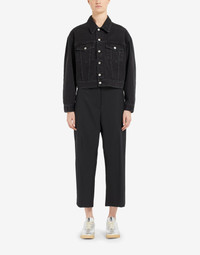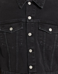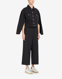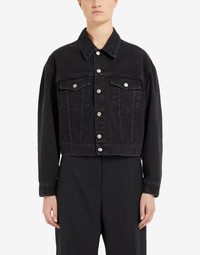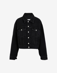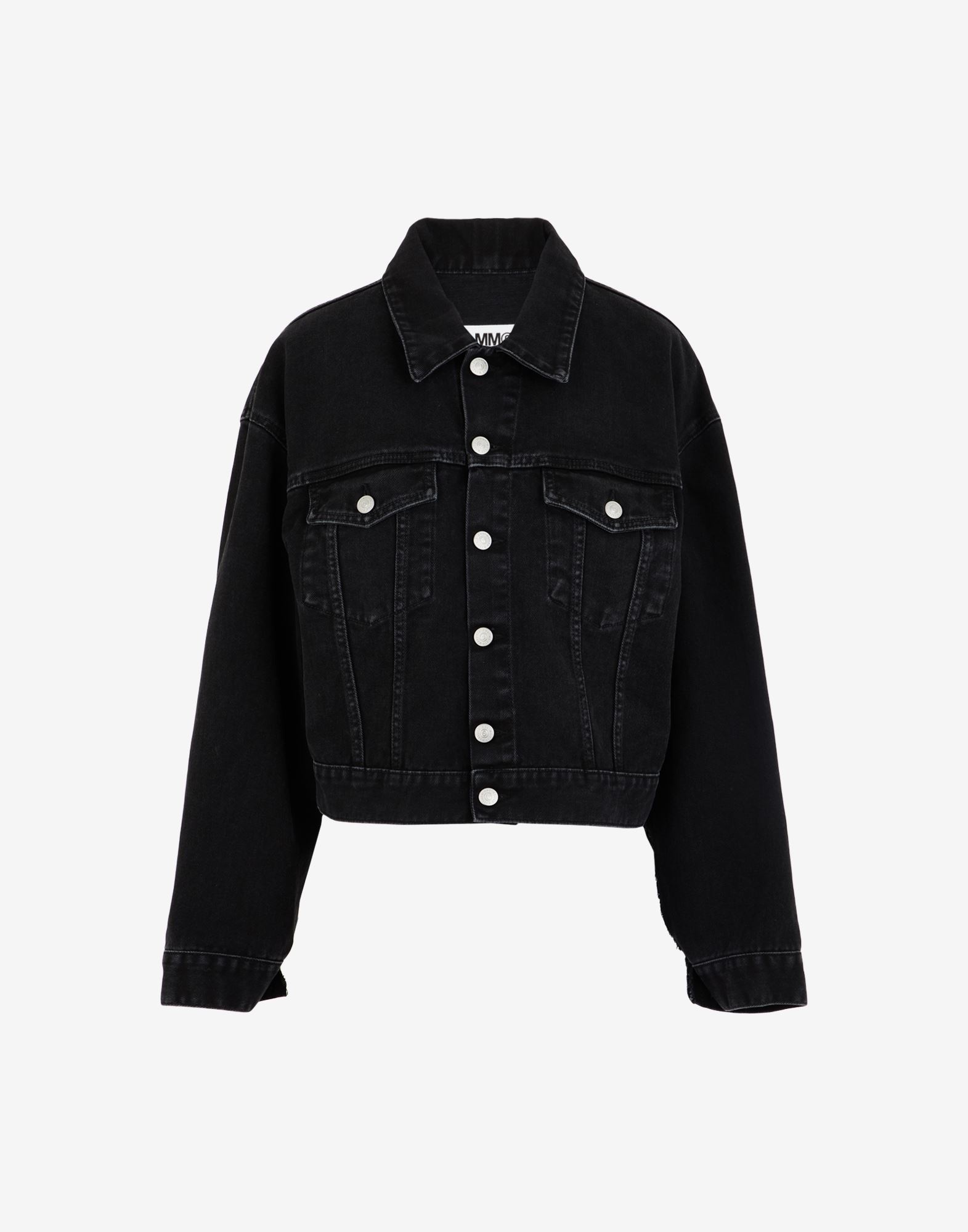 Denim jacket with classic collar and buttons to close. It features raw edged Décortiqué sleeves for a new silhouette and the signature MM6 stitchline at the back. Item details 100% Cotton Long sleeves Solid color Classic Neckline Button closing Denim Dual chest pockets Unlined