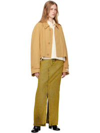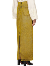 Non-stretch denim maxi skirt. Fading throughout. · Mid-rise · Belt loops · Raw edge at waist · Five-pocket styling · Button fly · Vent at front and back hem · White stitching at back Supplier color: Yellow Body: 100% cotton. Lining: 65% polyester, 35% cotton. Made in Italy 242188F093012
