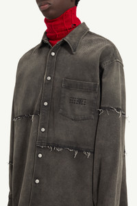 Explore the intersection of creativity and craftsmanship with this denim shirt, expertly tailored to be ready when worn. With its long sleeves and pointed collar, it features the MM6 numeric signature at the front and its iconic white stitch line at the back, celebrating raw creativity and subtle rebellion in every stitch. Product Details Item ID SH2DT0009S30848962 Composition: 100% cotton Washed black denim shirt Pointed collar Long sleeves Button closure MM6 numeric signature at the front Patch pocket Buttoned cuffs White stitch line at the back Made in Italy