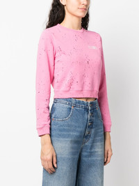 distressed logo-print sweatshirt Highlights - Flamingo pink - Cotton blend - Logo print at the chest - Distressed effect - Crew neck - Long sleeves - Ribbed cuffs and hem - Cropped Made in Italy Composition Cotton 65%, Polyester 35% SIZE & FIT Model measurements Height 5 ft 10 in(1.79 m) Bust/Chest 33.07 in(84 cm) Hips 35.82 in(91 cm) Waist 24.01 in(61 cm) Washing instructions Machine Wash
