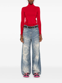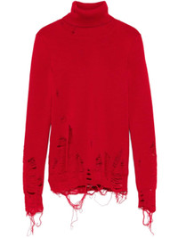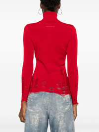 red virgin wool blend fine knit distressed effect roll neck long sleeves signature single-stitch logo Size & Fit Model Measurements: Height: 1.78 m Bust/Chest: 78.0 cm Hips: 92.0 cm Waist: 57.0 cm Model wears size S Fabric and Care Designer Style ID: S62HA0087M13070 Designer Colour: 307 RED Composition: Virgin wool 50%, Acrylic 50% Washing instructions: Dry Clean Only Made in Romania