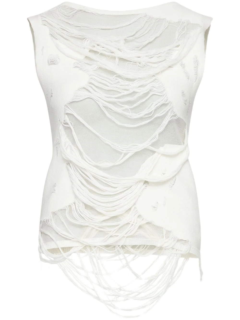 distressed top Highlights - White - Semi-sheer construction - Boat neck - Sleeveless Imported Composition Cotton 97%, Polyamide 3%