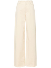 distressed wide-leg trousers Highlights - Pale yellow - Cotton - Twill weave - Distressed effect - Classic five pockets - Signature single-stitch logo - Internal logo tag - Wide leg - Raw-cut hem - Concealed hook and zip fastening Made in Italy Composition Outer: Cotton 97%, Elastane 3% Lining: Cotton 100% SIZE & FIT Model measurements Height 5 ft 10 in(1.77 m) Bust/Chest 33.07 in(84 cm) Hips 37 in(94 cm) Waist 24.8 in(63 cm) FittingInformation Designed with a wide-leg cut, these trousers allow for a close fit at the waist and offer a loose and roomy fit over the leg Made from a midweight stretch fabric, this piece offers elasticity and flexibility when worn This piece fits true to size – take your usual size Washing instructions Machine Wash