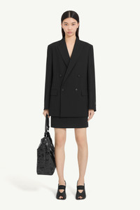 This blazer pares tailoring back to precision. Peak lapels and flap pockets retain a formal edge, while the softened shoulders and loose cut emphasise proportion over structure. Signed with the MM6 numeric label at the sleeve and the white stitch line at the back. Product Details Item ID S52BN0144M35436900 Primary fabric: 55% polyester 45% virgin wool Lining: 100% viscose-rayon Light wool blend Long sleeves Notched lapel neckline Front closure with buttons White stitch line at the back Made in Italy