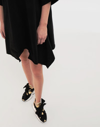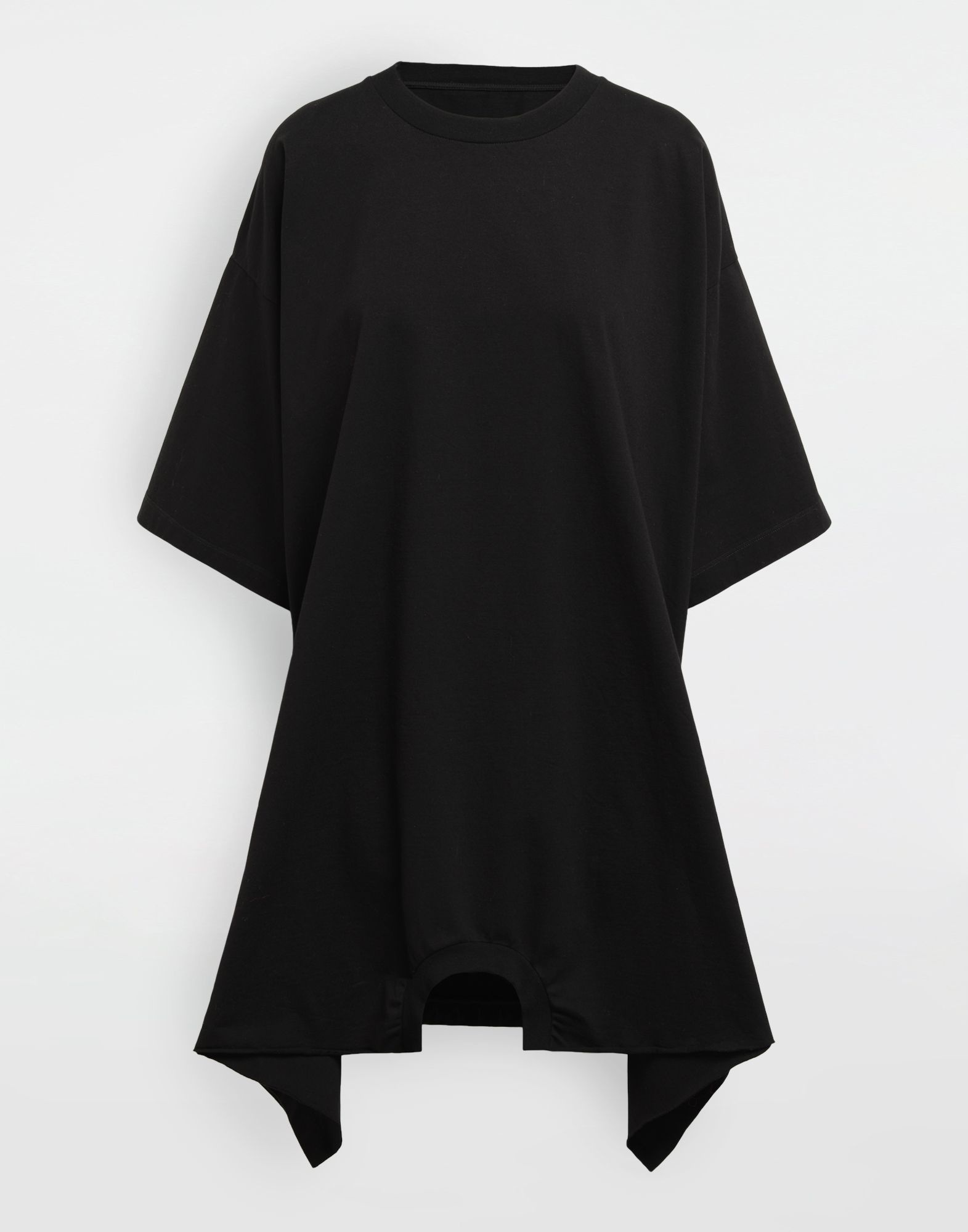 Constructed from two joined T-shirts, this cotton jersey midi dress feature wide short sleeves in a relaxed fit with an open hem. The Maison's iconic straight white stitch is marked on the back. Item details Round collar Jersey Unlined Flared hem