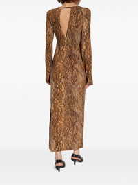 long-sleeve dress Highlights - Brown - V-neckline - Side slit - Long sleeves - All-over graphic pattern Made in Italy Composition Polyamide 73%, Spandex/Elastane 27%
