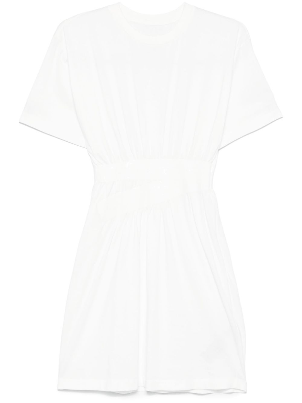 duct tape-detail mini dress Highlights - White - Concealed side zip fastening - Crew neck - Short sleeves - Gathered detailing Made in Italy Composition Cotton 100% SIZE & FIT Model measurements Height 5 ft 10 in(1.78 m) Bust/Chest 33.85 in(86 cm) Hips 36.61 in(93 cm) Waist 25.19 in(64 cm) FittingInformation Designed for a loose fit at the chest with a close fit over the waist and hips Made from a midweight non-stretch fabric, this piece offers minimal elasticity when worn