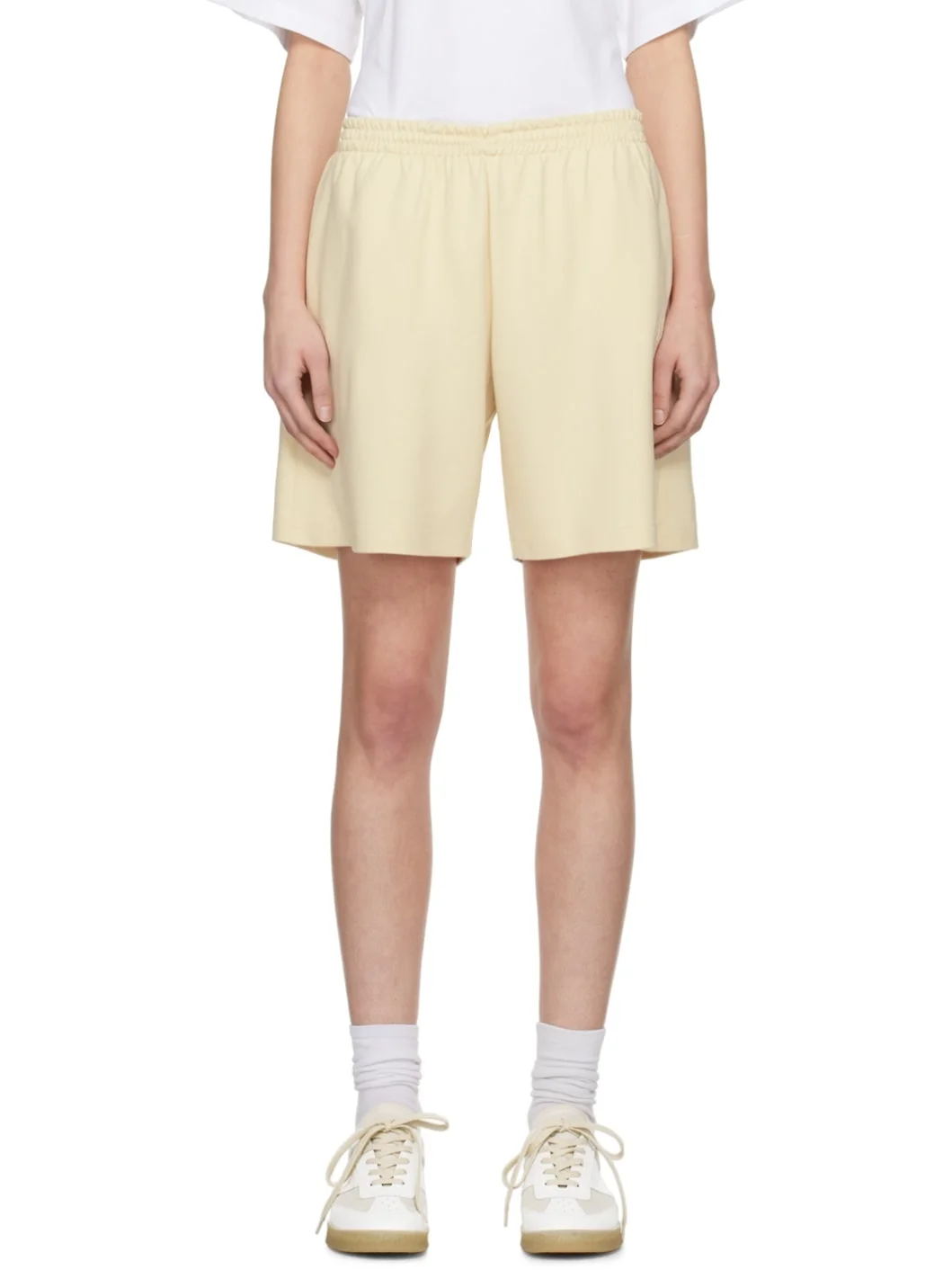 Stretch viscose- and nylon-blend double jersey shorts. · Concealed drawstring at elasticized waistband · Two-pocket styling · Logo embroidered at front pocket · Signature white stitching at back waistband Supplier color: Post it yellow Body: 68% viscose, 27% polyamide, 5% elastane. Trim: 100% cotton. Made in Italy 241188F088003