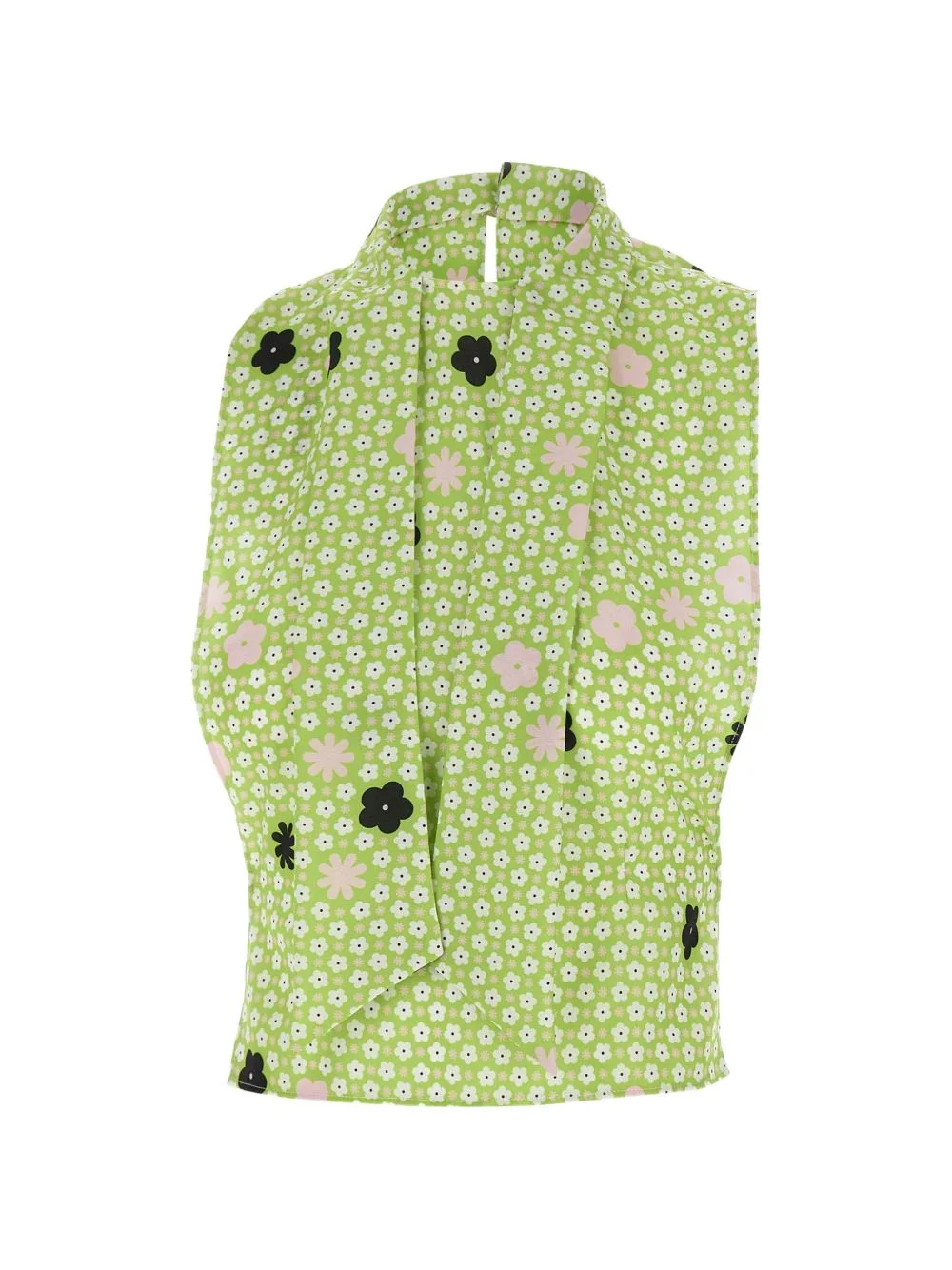 floral print scarf top Highlights - Green - Floral print - Scarf detail - Back snap button fastening - Sleeveless - Side openings Made in Italy Composition Polyester 100%, Viscose 100% Washing instructions Read Manufacturer Guidelines