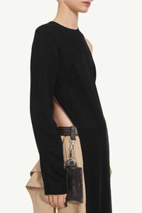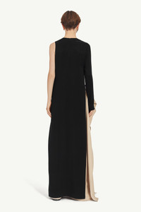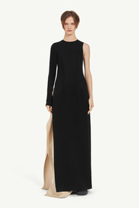 Crafted from fluid cupro, MM6's one-shoulder top has a crewneck and is detailed by side slits and zip closure at the back. The brand’s discreet yet distinct signature, a horizontal line of white stitches, is found on the back. Product Details Item ID S62NH0024M35077900 Model is 176 cm tall and wears a size 42.