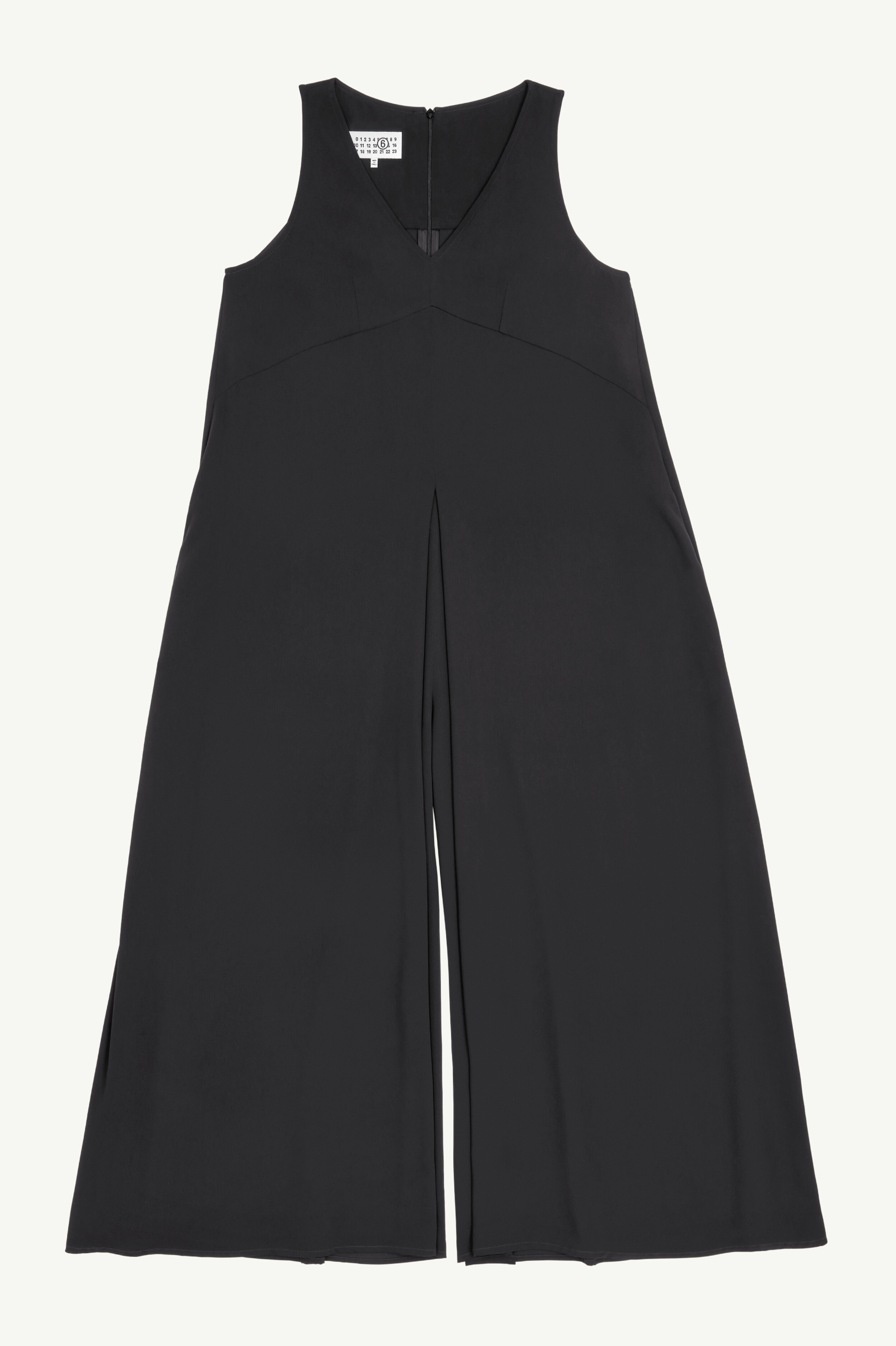 MM6’s black jumpsuit is made from fluid polyester to a sleeveless silhouette with a V Neck and wide leg. The brand’s discreet yet distinct signature, a horizontal line of white stitches, is found on the back of the garment. Product Details Item ID S52FP0087S43455900 Composition: 100% polyester Fluid polyester jumpsuit V neck Sleeveless Wide leg White stitch line at the back Made in Italy Model is 175 cm tall and wears a size 45.