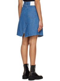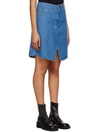 Non-stretch denim skirt. Fading and distressing throughout. · Belt loops · Five-pocket styling · Zip-fly · Central vent at front and back hem · Textile logo patch at back waistband · White stitching at back waistband Supplier color: Medium blue