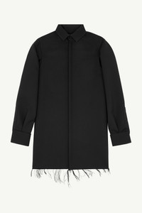 A twill shirt meticulously crafted to redefine the conventional. With long dramatic sleeves and a concealed button closure, it maintains a seamless silhouette. Buttoned cuffs and a raw-edge hem accentuate its innovative appeal. At the back, the MM6 artwork and a distinctive white stitch line quietly embody the Maison's signature. Product Details Item ID S62DT0030M35222900 Composition: 100% polyester Polyester twill shirt Long sleeves Concealed button closure Buttoned cuffs Raw-edge hem MM6 numeric jacquard signature at the back White stitch line at the back Made in Italy