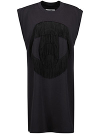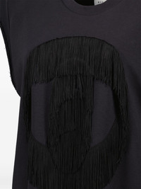 fringed dress Highlights - Black - Crew neck - Cap sleeves - Straight hem Imported Composition Fabric 100%