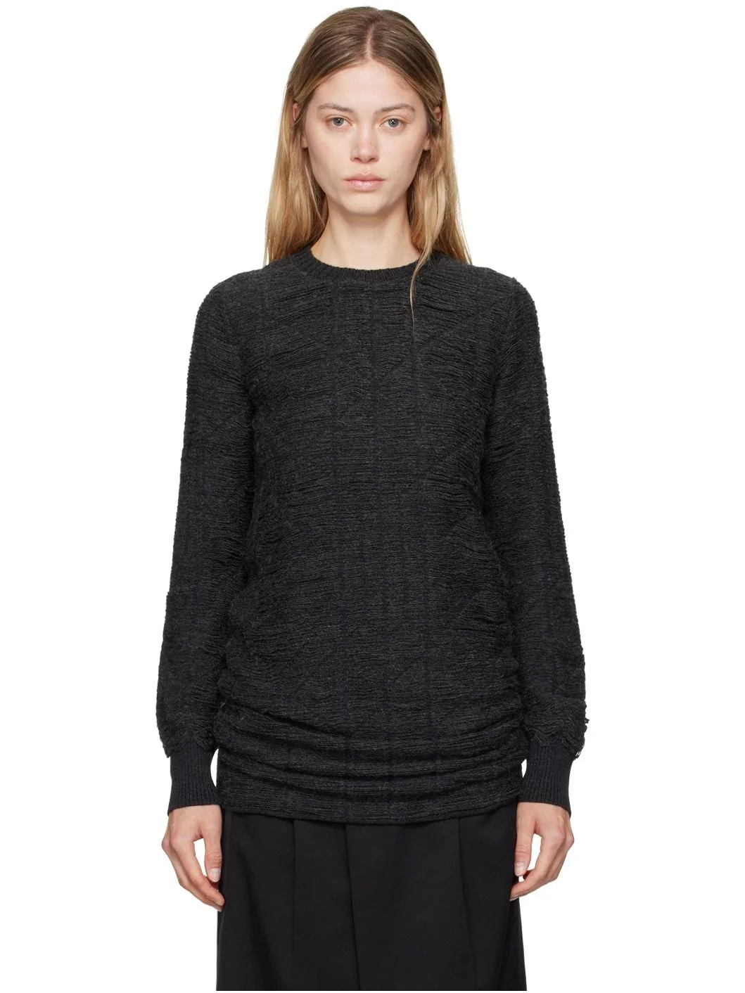 Brushed open knit acrylic- and virgin wool-blend sweater. Laddering throughout. · Layered construction · Rib knit crewneck and cuffs · Rolled hem · White stitching at back collar Supplier color: Dark grey melange 50% acrylic, 50% virgin wool. Made in Romania 242188F096005