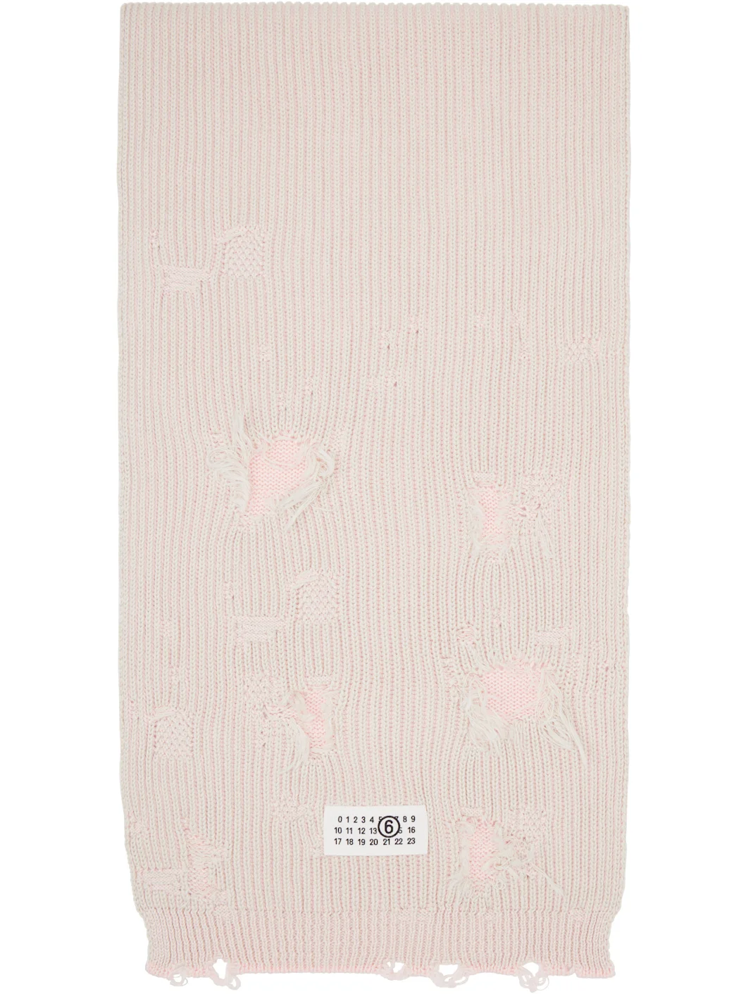 Rectangular rib-knit cotton scarf. · 7-gauge rib-knit · Distressing throughout · Logo patch at face · L76" x W12" Supplier color: Light grey/Rose 100% cotton. Made in Italy 261188F028005