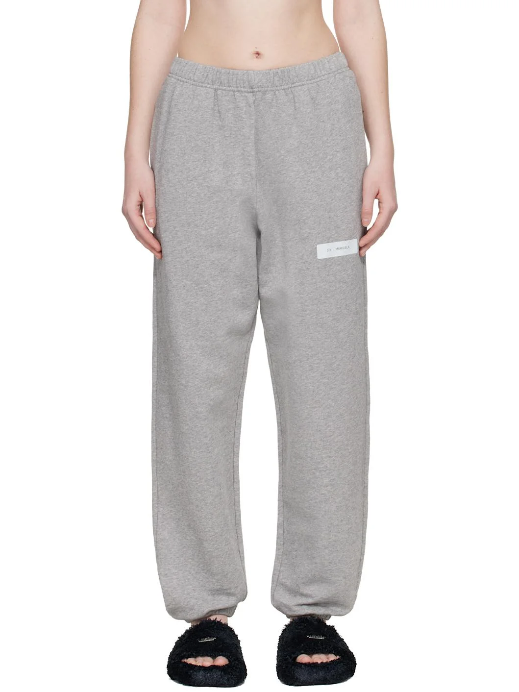 Cotton French terry sweatpants. · Elasticized waistband and cuffs · Concealed cord-lock at waistband · Two-pocket styling · Logo printed at front leg · White stitching at back waist Supplier color: Light Grey Melange 100% cotton. Made in Portugal 261188F086007