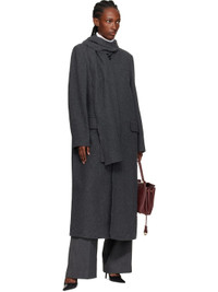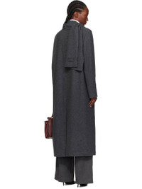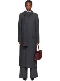 Wool-blend melton coat. · Integrated scarf at notched lapel · Button closure · Flap pockets at front · White stitching at back collar · Central vent at back hem · Welt pocket at interior · Full satin lining Supplier color: Dark grey Melange Body: 68% wool, 27% polyamide, 5% other fibres. Trim: 100% cotton. Lining: 100% viscose. Made in Italy 252188F059001