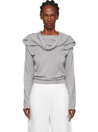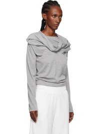 Virgin wool-blend jersey top. · Draping throughout · Cowl neck · Pleats at chest · White stitching at back collar Supplier color: Medium grey melange 50% virgin wool, 50% acrylic. Made in Italy 252188F110009