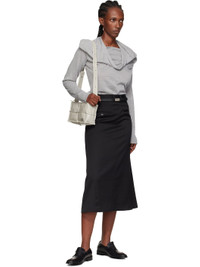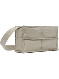 Crinkled patent calfskin shoulder bag. · Paneled construction · Pinched seams throughout · Adjustable shoulder strap · Logo plaque at face · White stitching at back face · Zip closure · Patch pocket at interior · Cotton twill lining · Silver-tone hardware · H5.5" x W10" x D3" Supplier color: Vaporous grey Body: 100% calfskin. Lining: 100% cotton. Made in Italy 252188F048010
