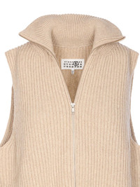 high-neck zip-front top Highlights - Beige - Ribbed knit - Zip closure - High neck - Sleeveless - Distressed effect Made in Italy Composition Wool 80%, Polyamide 20% Washing instructions Read Manufacturer Guidelines