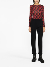 high-waisted trousers Lending a nod to the irreverent spirit of the mainline, these MM6 Maison Margiela trousers combine an avant-garde aesthetic with a street-inspired mood. Designed to sit high on the waist, they're decorated at the rear with the brand's signature white stitch detailing. Made in Italy Composition Outer: Polyester 100% Lining: Viscose 100% SIZE & FIT Model measurements Height 5 ft 10 in(1.77 m) Bust/Chest 32.67 in(83 cm) Hips 35.43 in(90 cm) Waist 23.62 in(60 cm) FittingInformation This piece fits true to size. We recommend you get your regular size Cut for a slim fit Made with a mid-weight non-stretch fabric Washing instructions Hand Wash