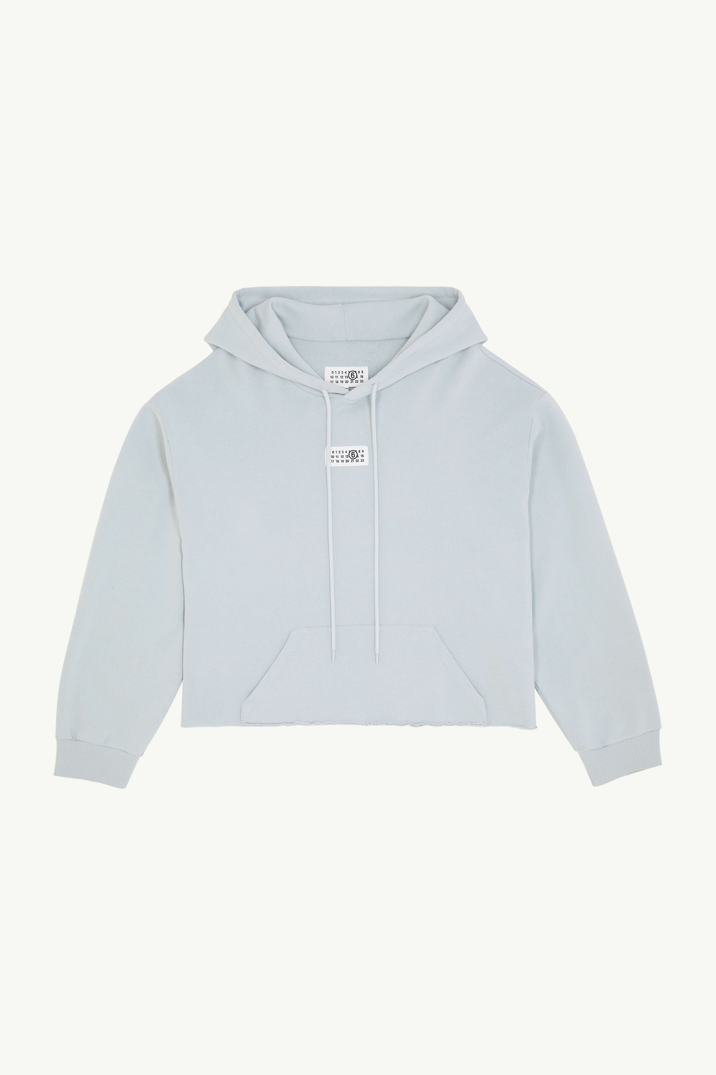 This hooded sweatshirt elevates an everyday staple with MM6's signature deconstructed aesthetic. The dropped shoulders and raw-edge hem offer a relaxed, undone silhouette, while ribbed cuffs provide a subtle contrast. With MM6’s numeric signature at the front and the iconic white stitch at the back, it distinctly captures the Maison's identity. Product Details Item ID S52GU0235M25012500 Primary fabric: 100% cotton Secondary fabric: 100% cotton Unbrushed sweat jersey hooded sweatshirt MM6 numeric signature at the front Dropped shoulder Raw-edge hem Ribbed cuffs White stitch line at the back Made in Portugal