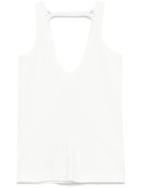 strap-detail tank top Highlights - White - Hook and eye fastening - Fine ribbed - Open back - Scoop neck Made in Italy Composition Cotton 98%, Elastane 2%