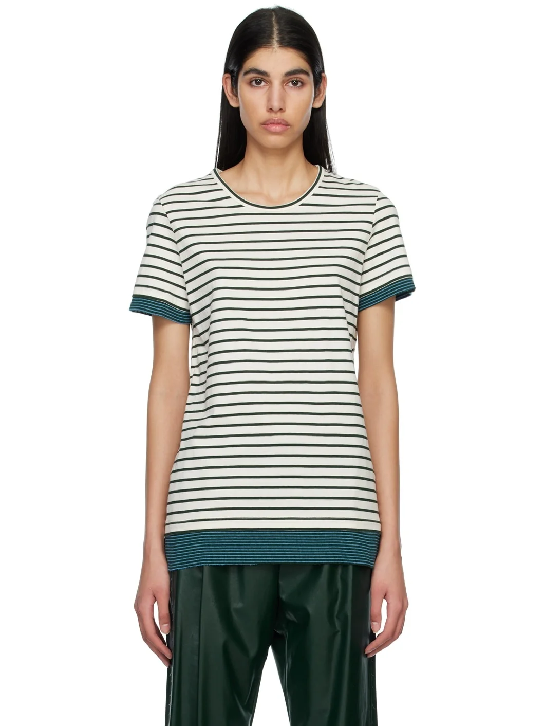 Cotton jersey T-shirt. Stripes throughout. · Layered construction · Rib knit crewneck · Waffle knit hem and cuffs · White stitching at back collar Supplier color: Blue Body: 100% cotton. Trim: 95% cotton, 5% elastane. Made in Italy 231188F110024