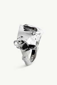 Forged in fluidity. This polished brass ring features a molten silhouette, where peaks and folds echo metal in motion – sculpture elevated to wearable form. Product Details Item ID SM7UQ0112P8604951 Primary material: 100% Silver-toned brass Sculptural band ring High-shine finish Made in Italy