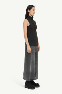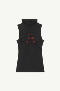 Crafted from a blend between Gauge 14 and Jacquard, MM6’s sleeveless turtleneck top features the seasonal gathered graphic pulling the volume towards the center. The brand’s discreet yet distinct signature, a horizontal line of white stitches, is found on the back. Product Details Item ID S62NC0155M13016002J Model is 178 cm tall and wears a size M.