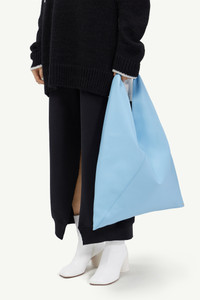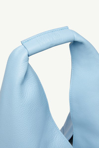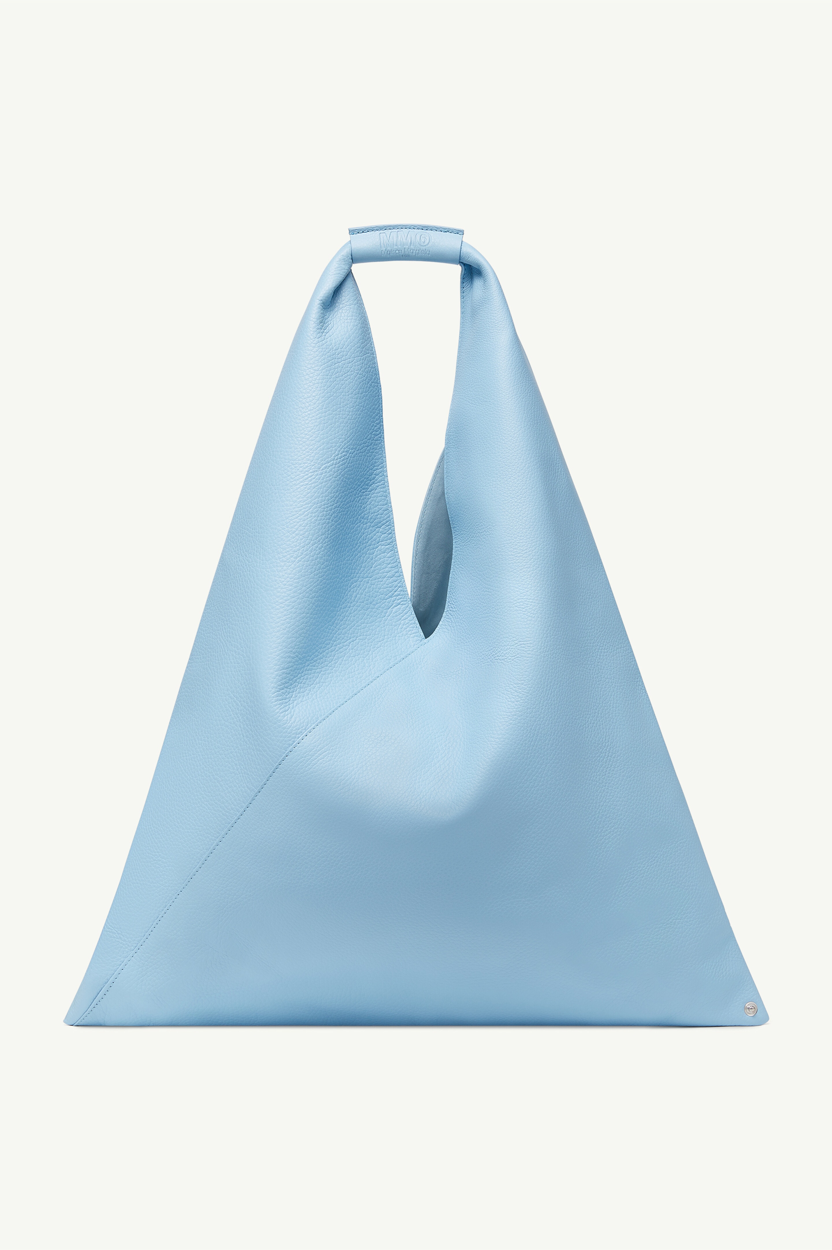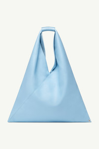 Japanese bag in grained leather. First introduced as part of the Autumn-Winter 2009 collection, the Japanese bag has since become MM6’s most emblematic accessory. Its distinctive triangular silhouette is inspired by the Japanese art of paper folding, origami. The buttons at its edges allow for the bag to change form through folding, evoking the Maison’s deconstructionist design codes. Each season, the Japanese bag is reinterpreted in additional sizes and a variety of innovative fabrics, rendering the accessory timeless. Product Details Item ID S54WD0039P4344H0748 Outer: 100% Grainy leather Lining: 100% Cotton Two different sections sewn together Two snap buttons on the bottom to change the shape of the bag Leather cuff with numeric logo White stitch line at the back at the back Button closure on leather detail Inside pocket with button closure Internal black label with white logo