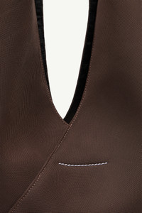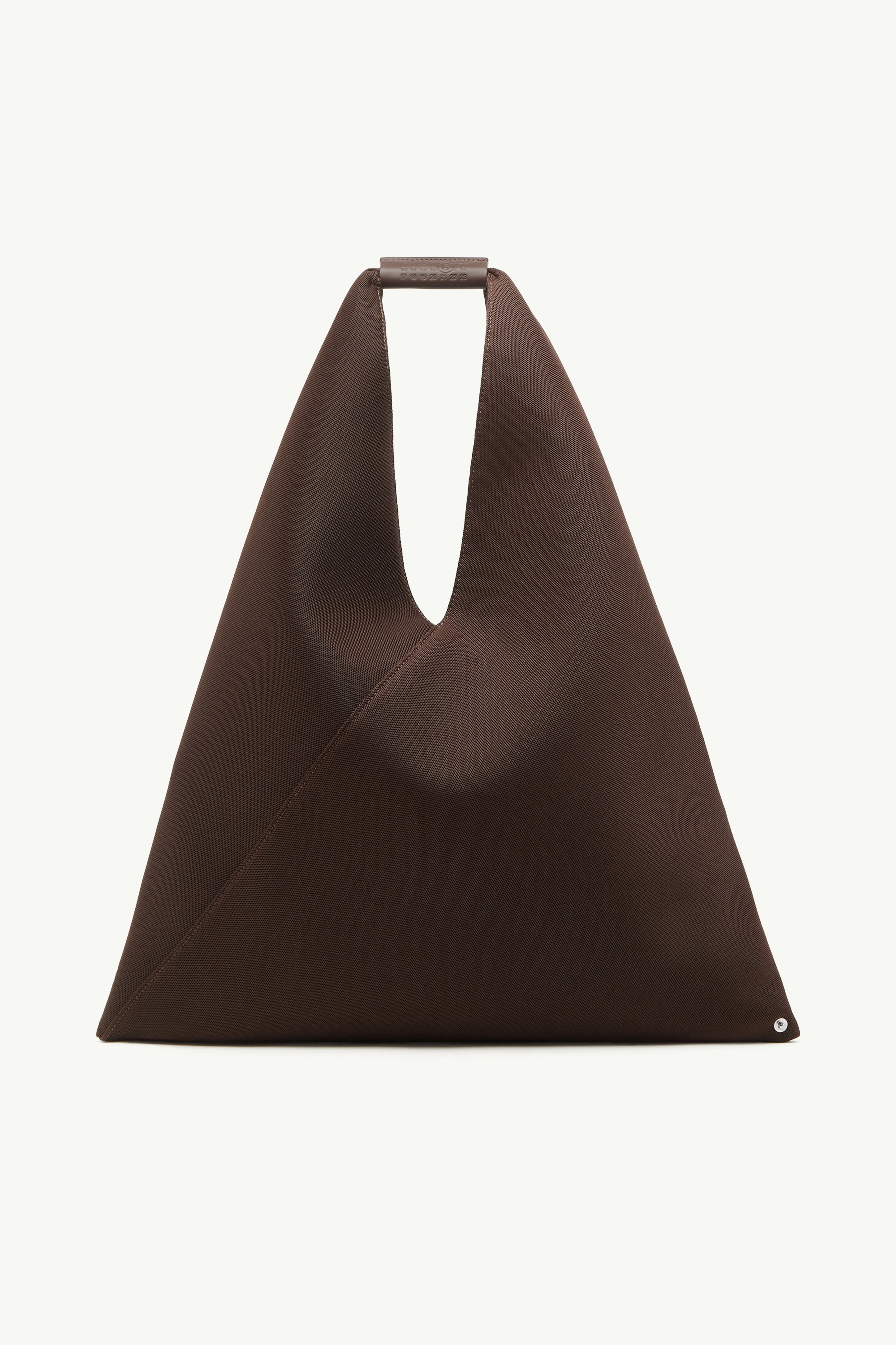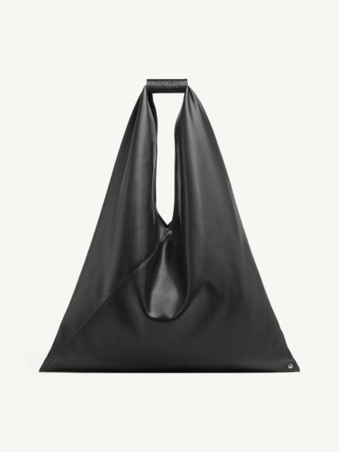 First introduced as part of the Autumn-Winter 2009 collection, the Japanese bag has since become MM6’s most emblematic accessory. The bag features two snap buttons at its edges that allow it to change form through folding, just like the origami that inspired its silhouette. The Japanese classic medium handbag in black mesh features a cuff adorned with the numeric artwork, jacquard lining button closure on leather detail and an inside pocket with button closure. The brand’s discreet yet distinct signature, a horizontal line of white stitches, is found on the back. Product Details Item ID S54WD0039P6414T2625 Body: 100% polyester Contrast: 100% calf leather Lining: 100% polyester Metallic parts: 100% copper Top handle with embossed numeric logo Fixed in length and shape Snap button closure at the corner White stitch line at the back Clean with a mild leather cleanser without rubbing