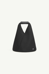 Thanks to its pillowy body, crafted from a calf leather and mesh and featuring wide ribbed top handles, MM6’s Japanese bucket handbag exudes tactile appeal. The bag features a leather cuff adorned with the numeric artwork and button closure. The brand’s discreet yet distinct signature, a horizontal line of white stitches, is found on the back. Product Details Item ID SB6WD0027P6414T8013 Body: 100% polyester Contrast: 100% calf leather Lining: 100% polyester Bucket handbag in mesh MM6 numeric signature leather cuff White stitch line at the back Button closure Height: 30 cm/11,8 in Width: 15 cm/6 in Length: 23 cm/9 in Handle drop: 10 cm/4 in Clean with a gentle cleanser and a damp microfiber cloth