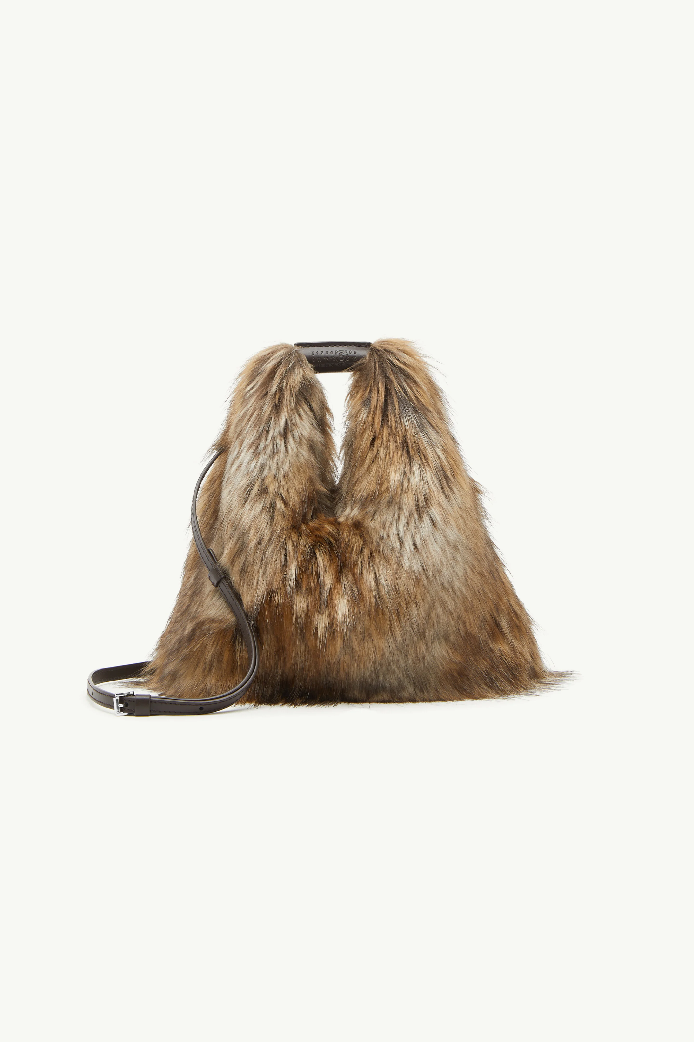 First introduced in 2009, the Japanese bag evolves with a textural twist. Rendered in faux fur, its sculptural shape remains a nod to origami craftsmanship while subverting expectations through softness and volume. With a versatile top handle and crossbody strap, it balances structure with a sense of ease. Product Details Item ID SB6WD0026P8486H9076 Body: 80% Acrylic, 20% Polyester Contrast: 100% Calf Leather Lining: 100% Cotton Metallic Parts: 100% Copper Crossbody bag in faux fur Soft triangular silhouette Adjustable crossbody strap Top handle debossed with numeric signature White stitch line at the back Made in Italy