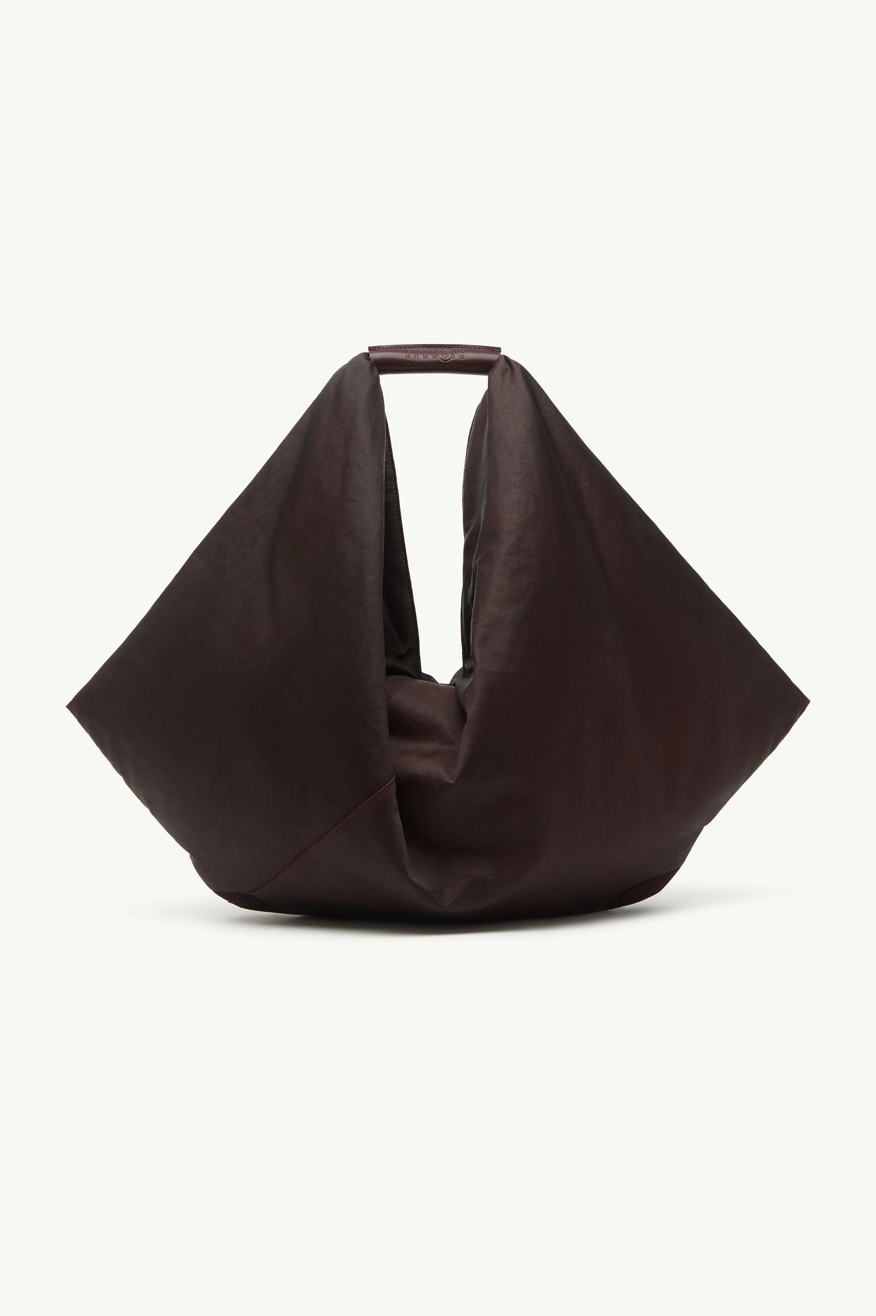 A softer take on the iconic MM6 Japanese bag, this draped tote in cotton satin introduces a sense of fluidity to its minimalist structure. Designed for everyday ease, it features the Maison’s signature white stitch line at the back – an understated emblem of deconstructed luxury. Product Details Item ID SB5WC0019P8487T5075 Body: 57% Cotton, 43% Viscose-Rayon Contrast: 100% Calf Leather Lining: 100% Cotton Tote bag with coated finish Soft folded construction Top handle debossed with numeric signature White stitch line at the back