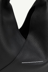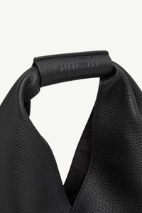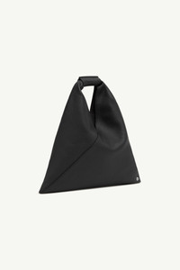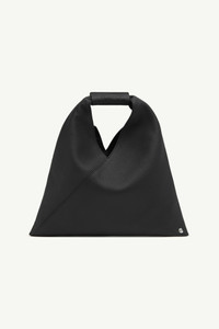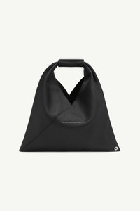 Japanese classic mini bag in grainy leather. First introduced as part of the Autumn-Winter 2009 collection, the Japanese bag has since become MM6’s most emblematic accessory. Its distinctive triangular silhouette is inspired by the Japanese art of paper folding, origami. The buttons at its edges allow for the bag to change form through folding, evoking the Maison’s deconstructionist design codes. Each season, the Japanese bag is reinterpreted in additional sizes and a variety of innovative fabrics, rendering the accessory timeless. Product Details Item ID SB6WD0013P5760T8013 Body: 100% calf leather Lining: 100% cottonJapanese bag classic mini in grainy leather MM6 numeric signature cuff Two snap buttons at the edge to change the shape White stitch line at the back Button closure on leather detail Inside pocket with button closure Height: 32 cm/12,6 in Width: 7 cm/2,7 in Length: 32 cm/12,6 in Handle drop: 9,5 cm/3,7 in Clean with a gentle cleanser and a damp microfiber cloth