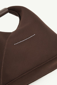 Crafted from mesh, the numeric crossbody bag is a dual-wear design that can be worn crossbody with its adjustable shoulder strap or carried by hand like a pochette. The brand's numeric signature is embossed on the design's leather cuff and the bag is detailed by button closure. MM6’s discreet yet distinct signature, a horizontal line of white stitches, is found on the back. Product Details Item ID SB6WD0026P6414T2625 Body: 60% polyester 40% polyurethane Contrast: 100% calf leather Lining: 100% polyester Metallic parts: 100% zinc Adjustable shoulder strap Embossed logo detail on handle Magnetic closure White stitch line at the back Inside logo stamping