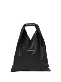 Japanese triangular tote bag Highlights - Black - Debossed numeric artwork - Triangular silhouette - Top handle - Signature white stitch line at the back - Button detailing Imported Composition Outer: Polyurethane 100%, Calf Leather 100%, Cotton 100%