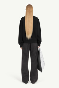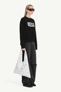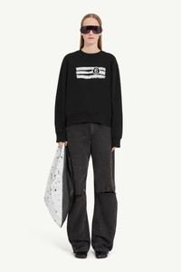 A ribbed round-neck cotton jersey sweatshirt that introduces a subtle disturbance to a familiar code. The Maison’s numeric artwork emerges only partially, its clarity obscured by a white paint effect that disrupts expectation. Neither fully legible nor entirely concealed, it suggests a quiet tension, an ongoing process rather than a finished statement. Product Details Item ID S62GU0139M25004900 Primary Fabric: 100% Cotton Unbrushed sweat jersey sweatshirt Crewneck Front painted over MM6 numeric signature print Ribbed trims White stitch line at the back Made in Italy