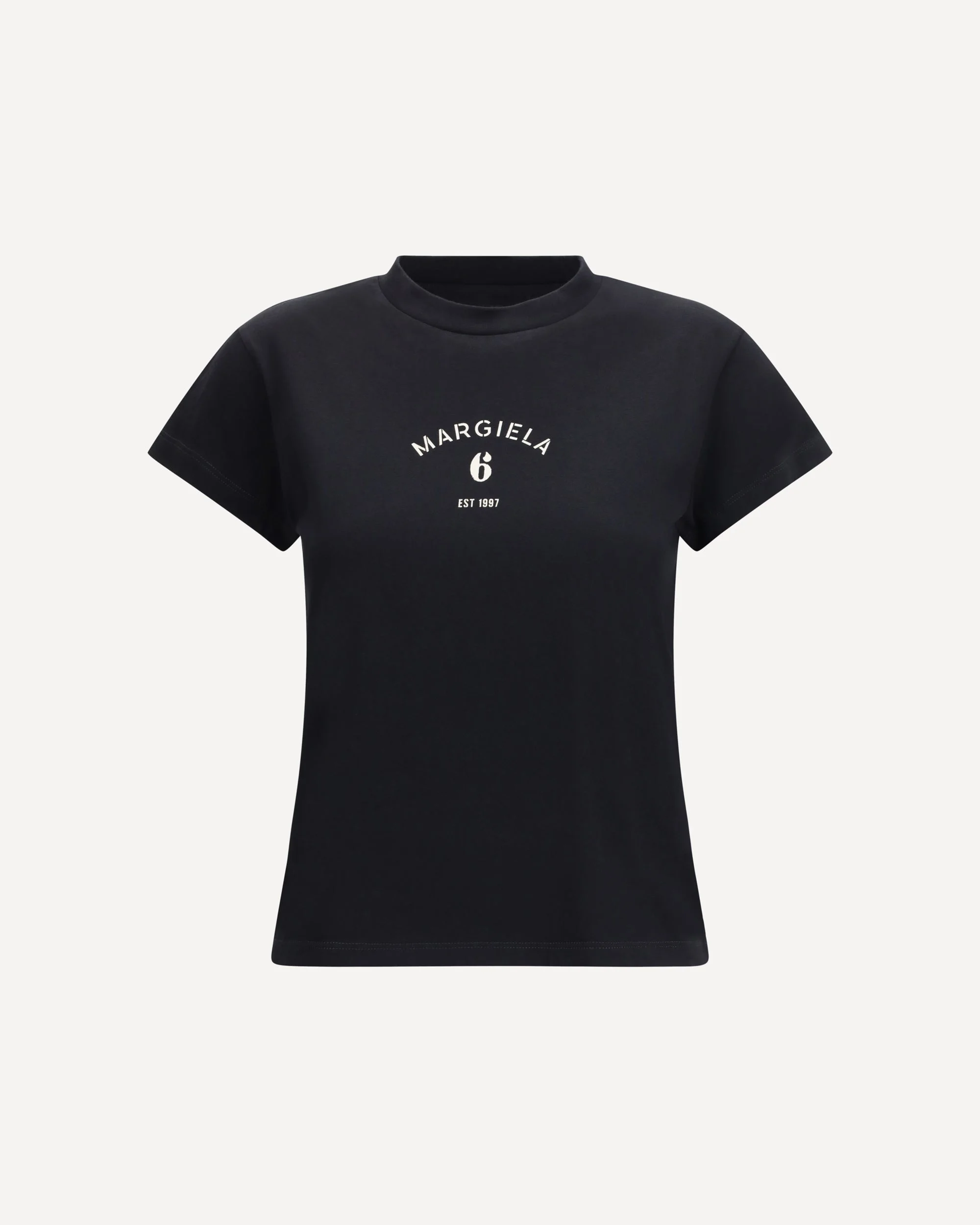 The Jersey T-shirt with logo by MM6 is made from soft cotton jersey and features a simple yet refined design. The numeric logo is discreetly embroidered on the front, while a line of white stitching on the back unmistakably signs the piece. It has short sleeves, a crew neckline, and an essential yet distinctive look. DETAILS - Sku: S62GD0216M20048_900 - Season: SS26 - Fit: Regular - Composition: GENERAL 100% Cotton - MADE IN ITALY